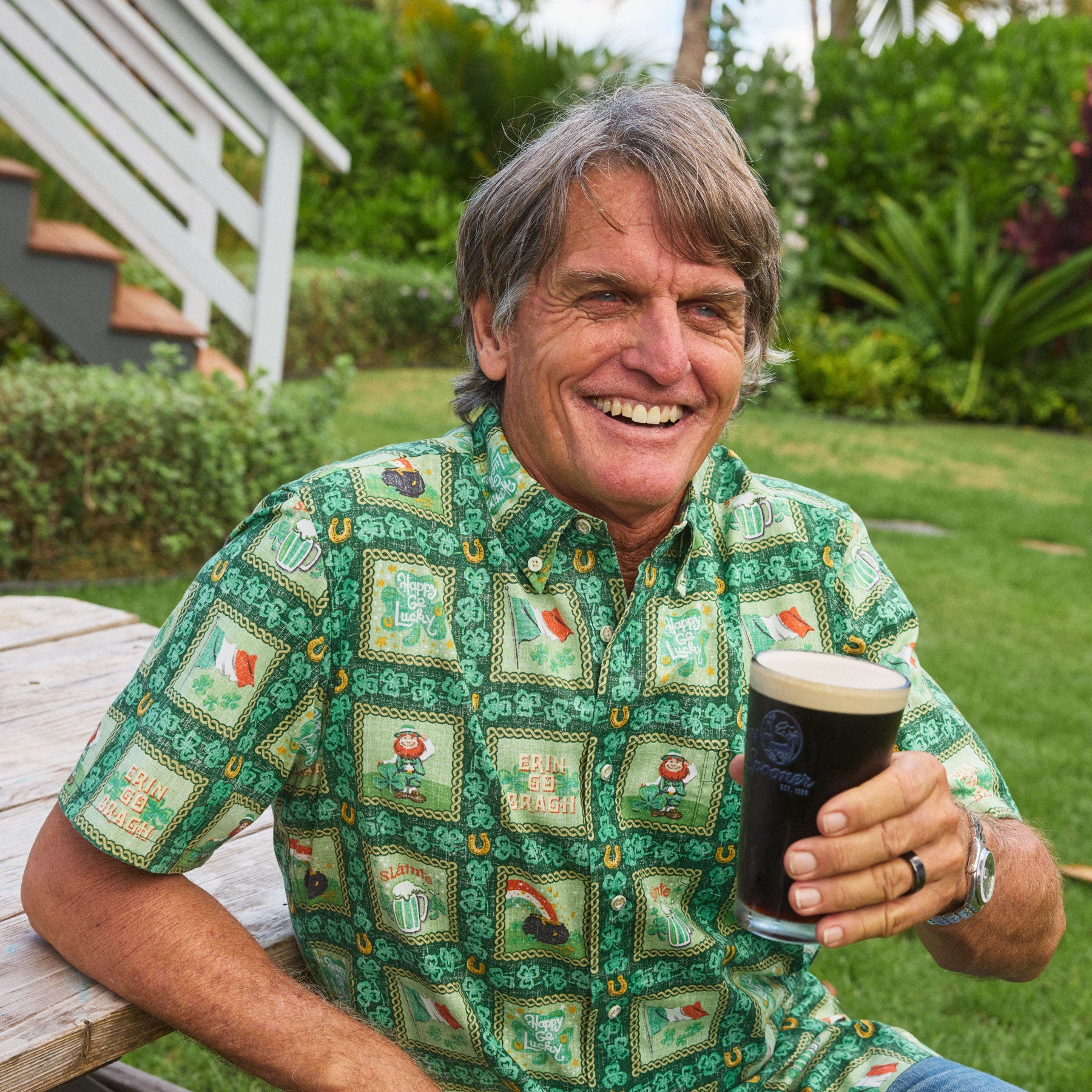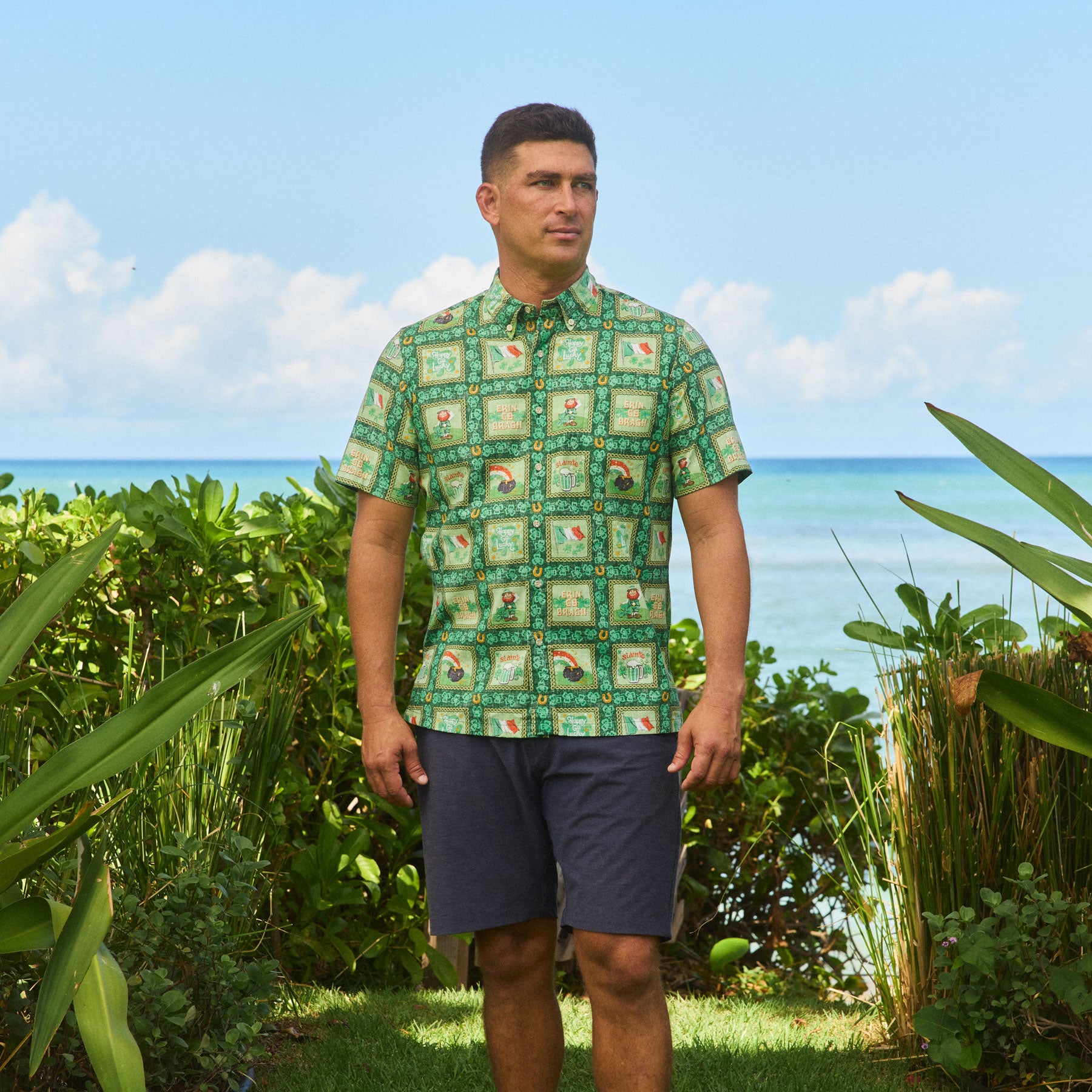 Erin go Bragh! Introducing our first-ever St. Paddy’s Day Spooner! This festive print gives a local twist to the Irish celebration - perfect for enjoying corned beef, Shepherd’s Pie, and a cold green beer, with Aloha of course. Hawai‘i’s own Irish pubs proudly join in the ‘Wearin’ of the Green,’ island-style. If you're lucky, you might find a four-leaf clover...