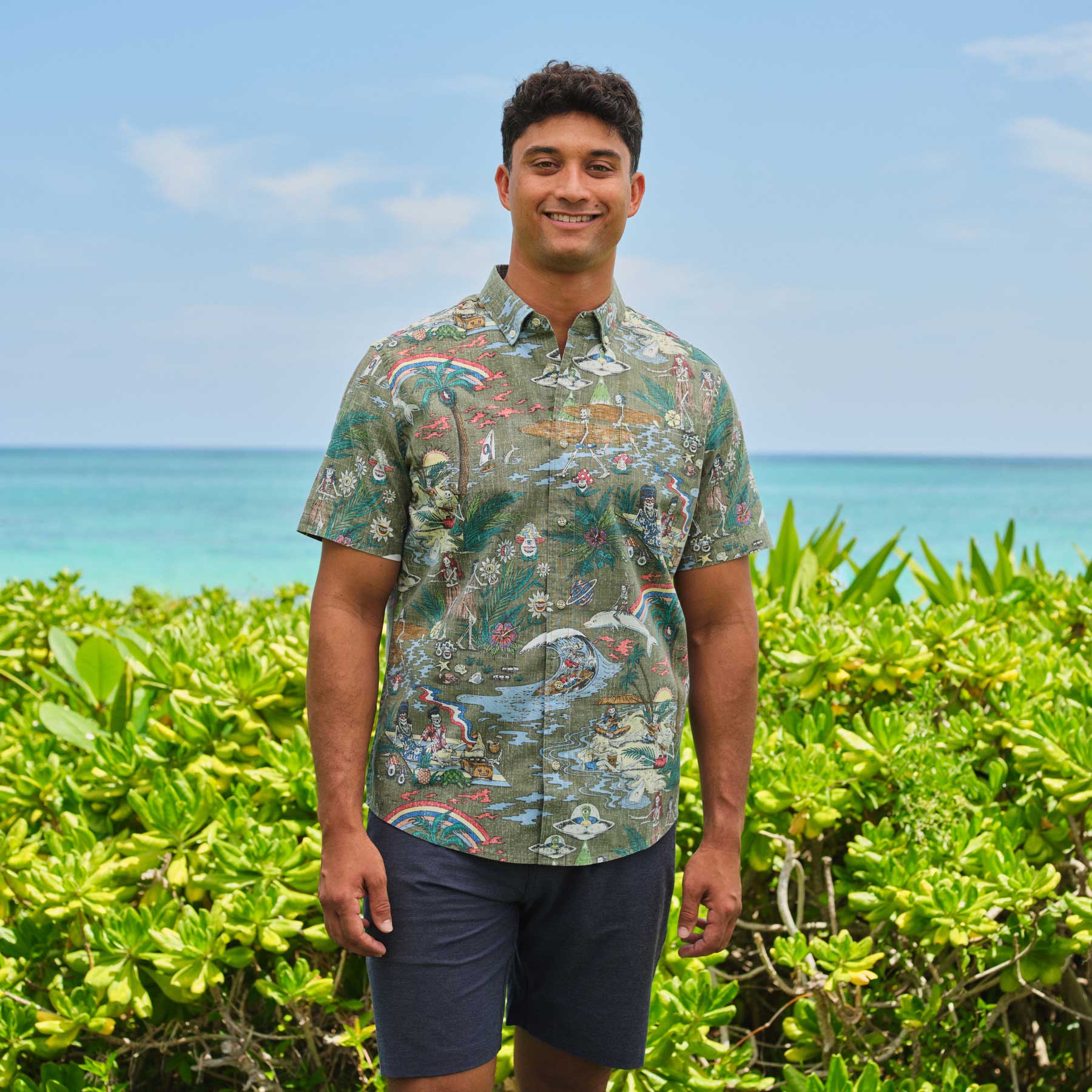 • Tailored: Trimmer than traditional aloha shirts with rounded shirt tail for a contemporary and modern untucked look.