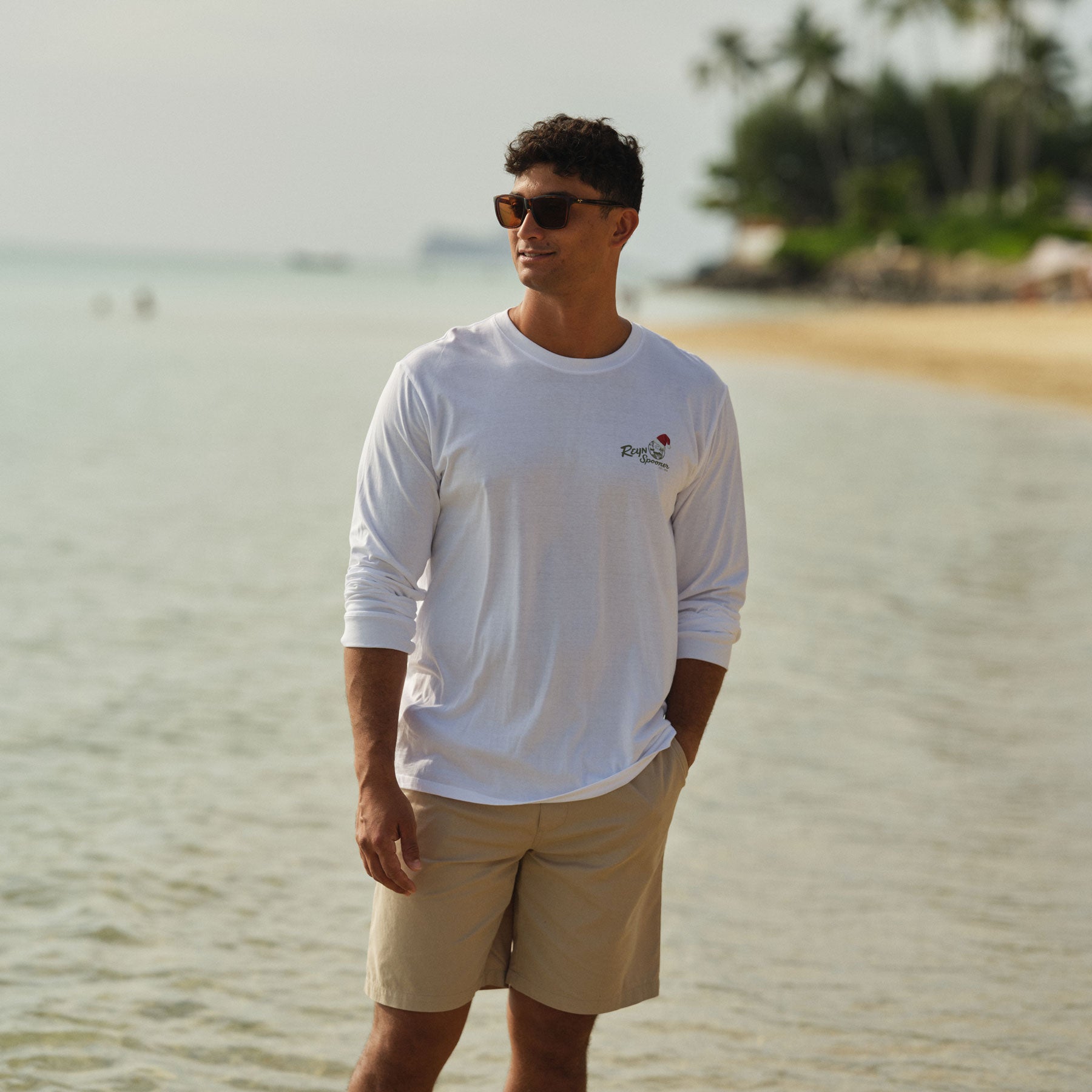Bring the holiday cheer island-style in our Santa Hula Long Sleeve Graphic Tee. Featuring Santa strumming his ukulele alongside hula dancers and framed in a festive lei border, this festive t-shirt blends Christmas spirit with Aloha for a look that’s merry and bright.