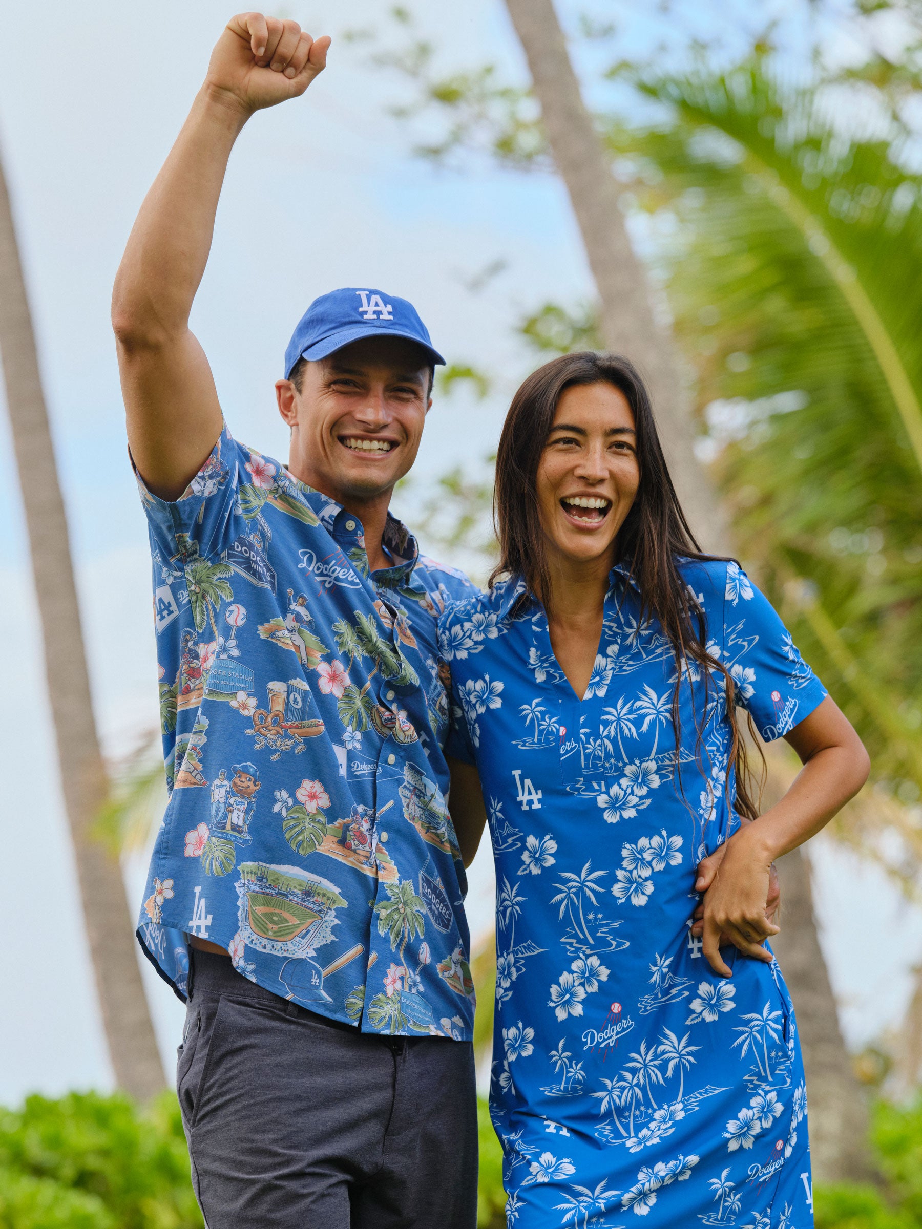 Our Los Angeles Dodgers Scenic Performance Aloha Shirt features iconic team elements, stadium scenes, and logos mixed with classic Aloha so you can represent in style for game days, in office, or casual outings.