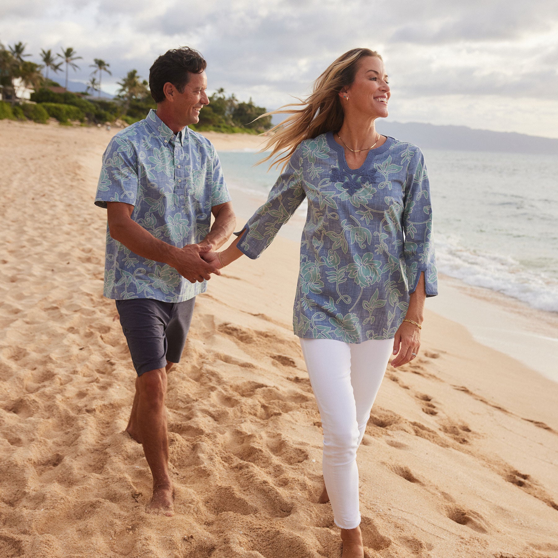 Crafted in our signature Spooner Kloth fabric, this relaxed fit tunic with 3/4 length sleeves in our Classic Pareau print features decorative embroidery accents on the neckline as well as the sleeve hem. Wear it to the beach or the pool as a sophisticated swimsuit cover-up, or style it with your favorite pair of pants for a chic evening look ready for dinner in paradise.
